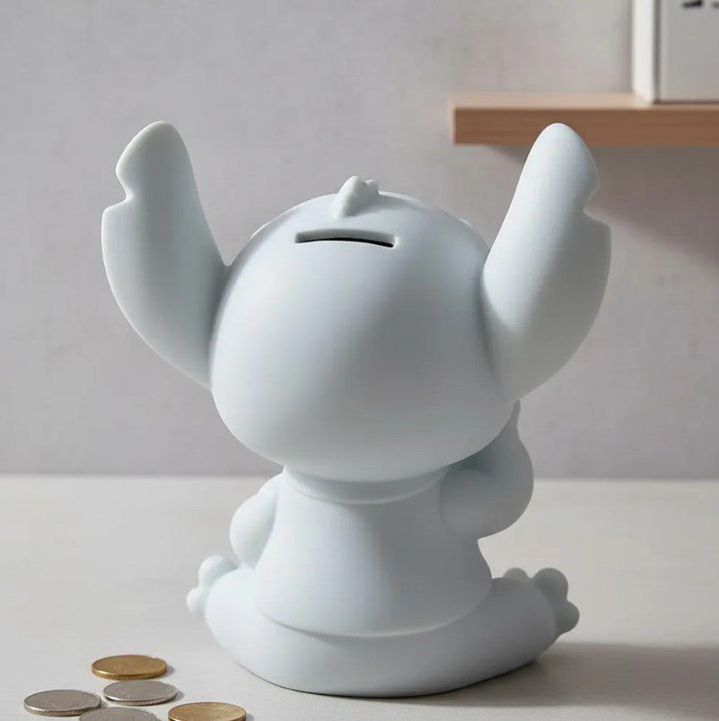 * Alcancía plástica en fondo Blanco de Stitch Para Pintar.
