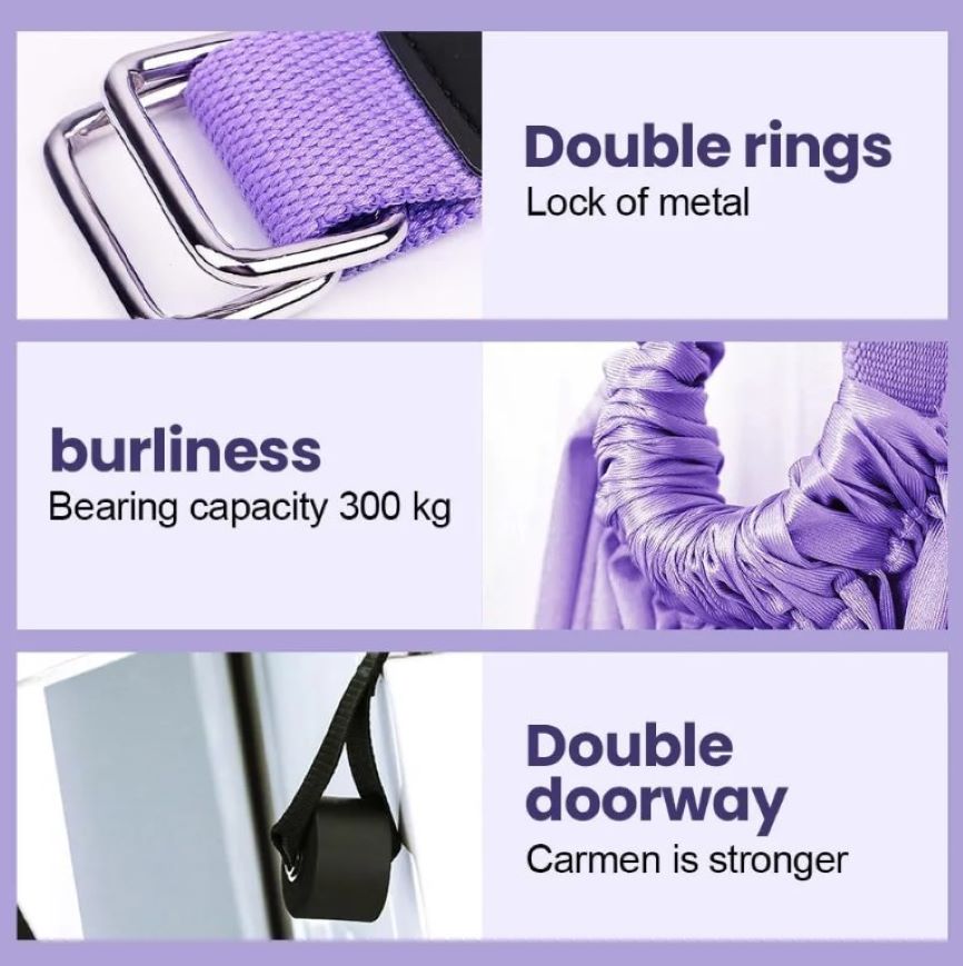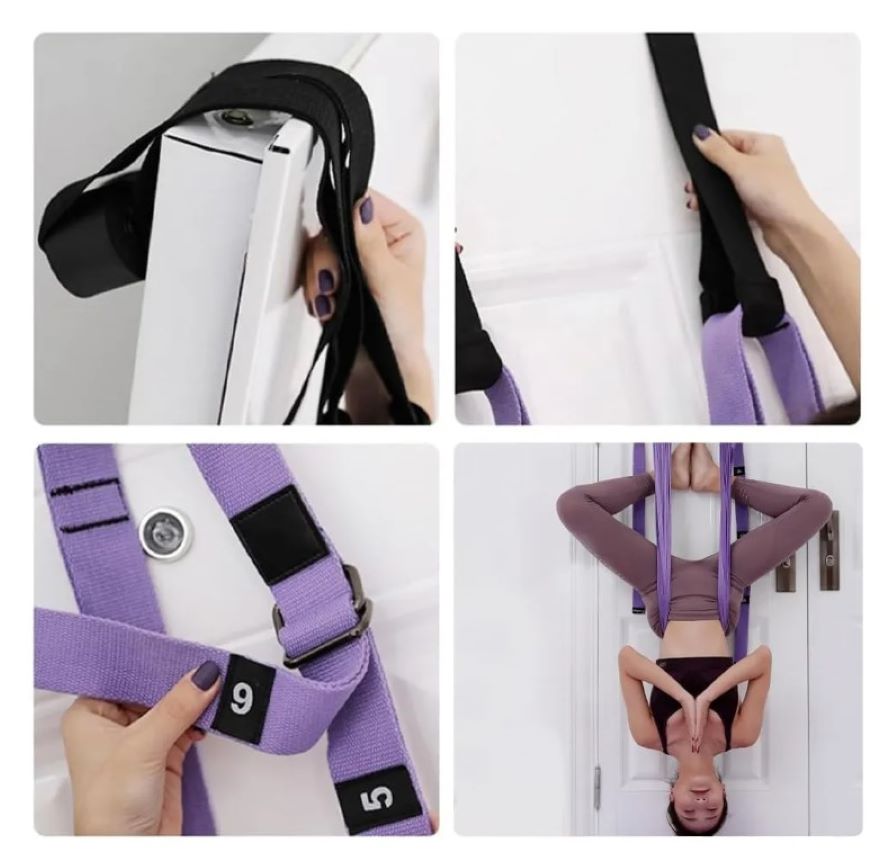 – Ideal para yoga aéreo, pilates y ejercicios de inversión, esta banda elástica ayuda a mejorar la postura, aliviar tensiones musculares y aumentar la movilidad de las articulaciones. Su instalación es sencilla y permite adaptar la altura según las necesidades del usuario, haciendo que sea perfecta tanto para principiantes como para expertos en entrenamiento de flexibilidad y rehabilitación.