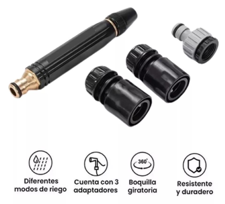 – Esta boquilla de alta presión ofrece un diseño robusto, Aumenta hasta 5 veces la presión de tu manguera, con esta boquilla es perfecta para limpiar autos, regar jardines y más fácil de usar y de instalar. Resistente a la decoloración e increíblemente duradera para una limpieza rápida y eficiente.