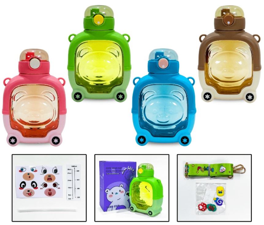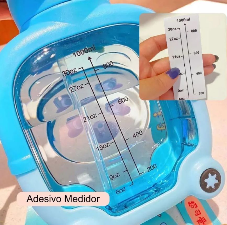 – Botilito, botella con diseño de oso, con correa por lo que es fácil de transportar. Ideal para llevar a la escuela, viajes, oficina, gimnasio, excursiones. Perfecto como regalo de cumpleaños para una niña o un niño, un amigo. Viene con 4 stickers para personalizarlas a tu gusto, lo que te permite crear una botella única y llena de personalidad. Además, incluye 4 Pines para añadir un toque tridimensional especial.