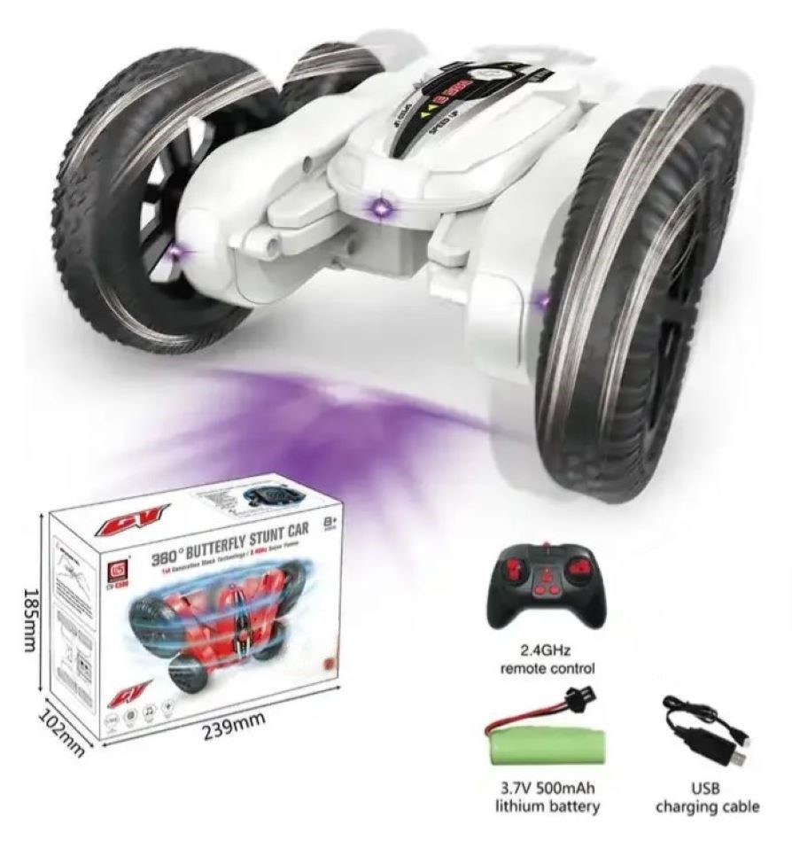 – Sumérgete en la emoción del 360 Butterfly Stunt Car, un emocionante vehículo a control remoto. Con su innovadora capacidad de rotación de 360 grados, este vehículo acrobático está diseñado para realizar giros, giros y maniobras dinámicas que desafían la gravedad y que te dejarán asombrado. El control remoto 2.4G incluido garantiza un manejo preciso, permitiéndole ejecutar estas impresionantes acrobacias con facilidad. Este coche de acrobacias es una opción destacada tanto por su rendimiento como por su estilo.