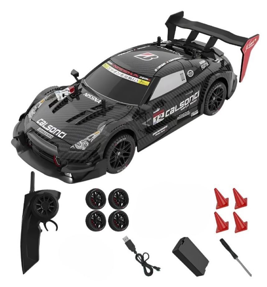 – Equipo profesional de derivación: equipado con 4 neumáticos de velocidad y 4 neumáticos dedicados a la deriva para competiciones de carreras y rendimiento intenso de deriva. Con batería recargable de coche completo, cargador de batería.