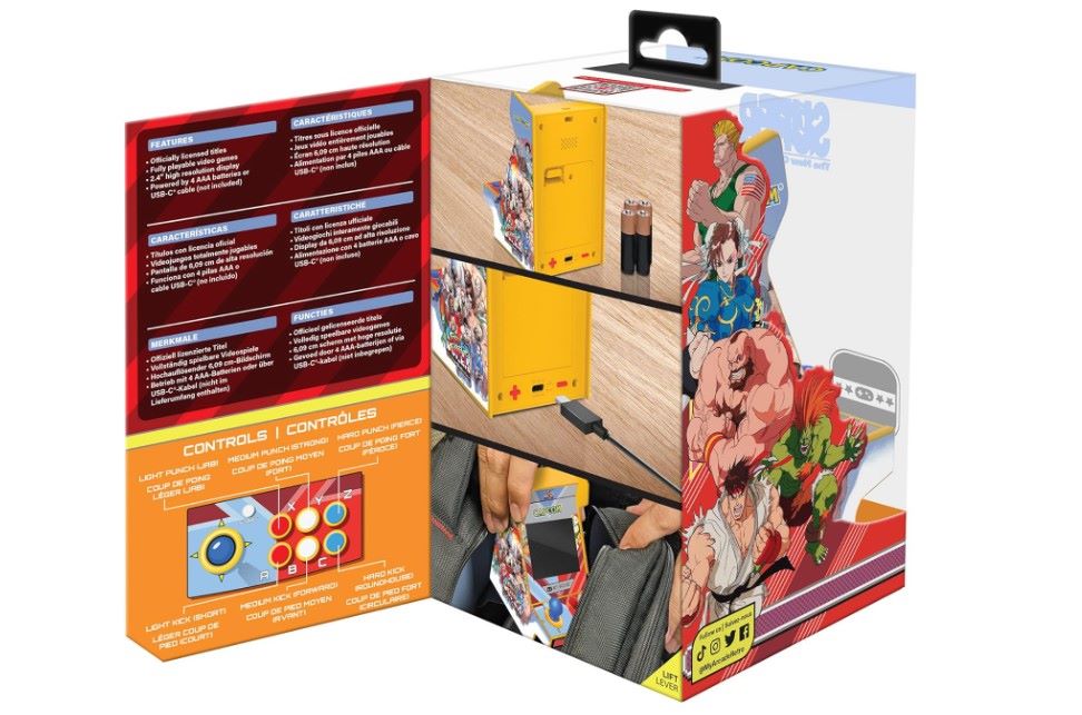 – La Super Street Fighter II Nano Player Pro Portable Retro Arcade funciona con 4 pilas AAA (no incluidas) o con un cable USB-C (no incluido), lo que te da la flexibilidad de jugar donde y cuando quieras. No te conformes con los juegos comunes y corrientes: pásate a la Super Street Fighter II Nano Player Pro Portable Retro Arcade.