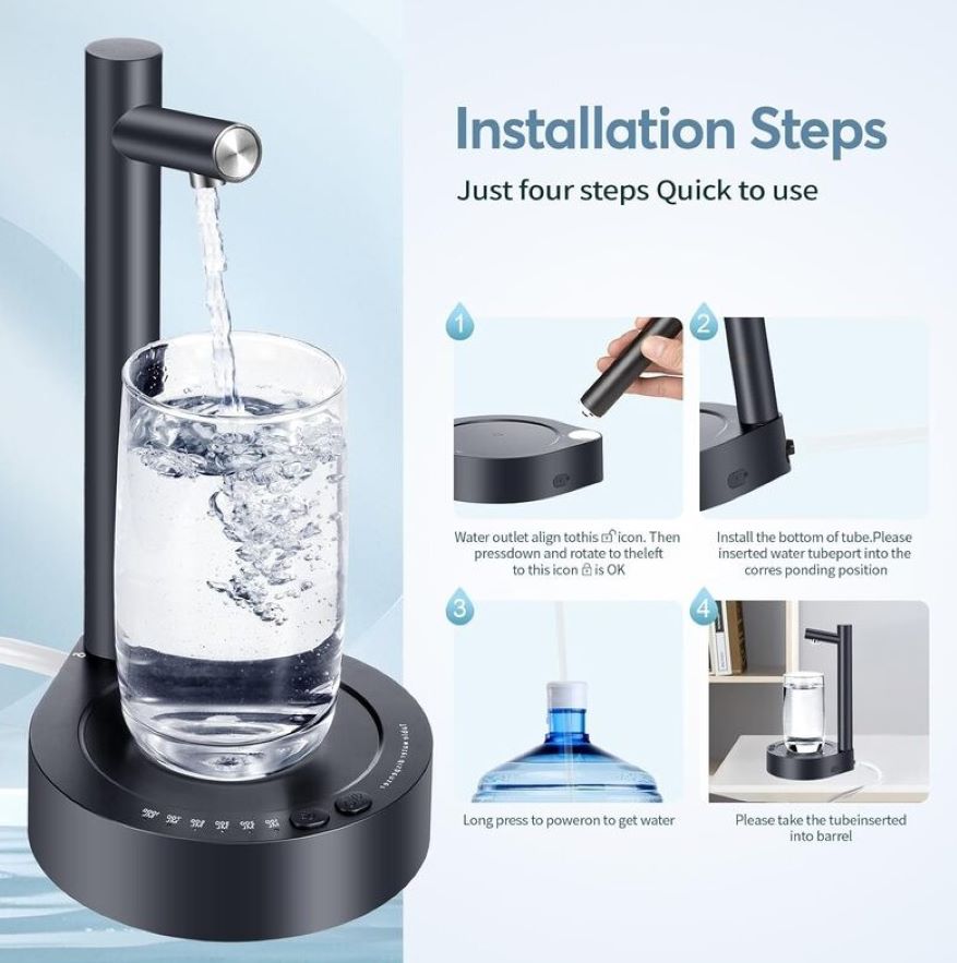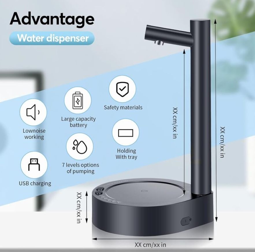 – Bombeo inteligente: el dispensador de agua eléctrico tiene 1 botón de bombeo continuo y 6 botones de salida de agua cuantitativos (100/200/300/500/700/33.8 fl oz). Puedes ajustar la salida de agua de acuerdo a tus necesidades, fácil de operar y garantizar que tengas la cantidad perfecta de agua cada vez.