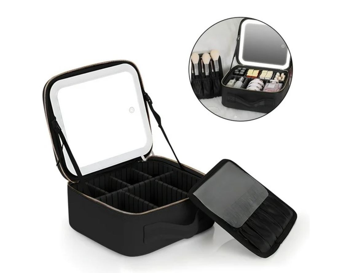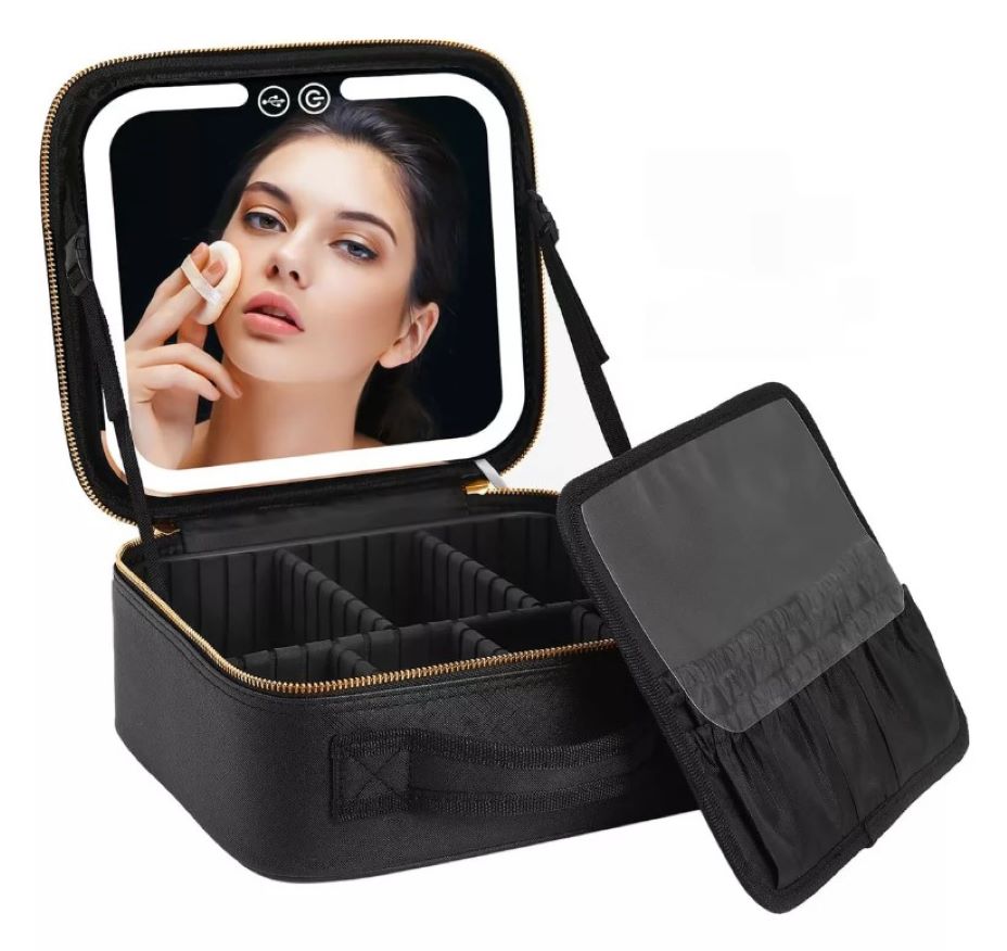 Estuche De Maquillaje Con Espejo Divisiones Removibles Luz Led 3 Modos.