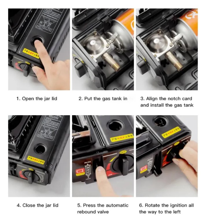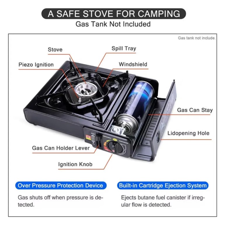 – Esta estufa portátil de un puesto es un calentador de gas butano diseñado para actividades en casa o al aire libre como acampadas, parrilladas y más. Equipada con un encendedor piezoeléctrico, esta estufa permite encender la llama de manera rápida y segura.