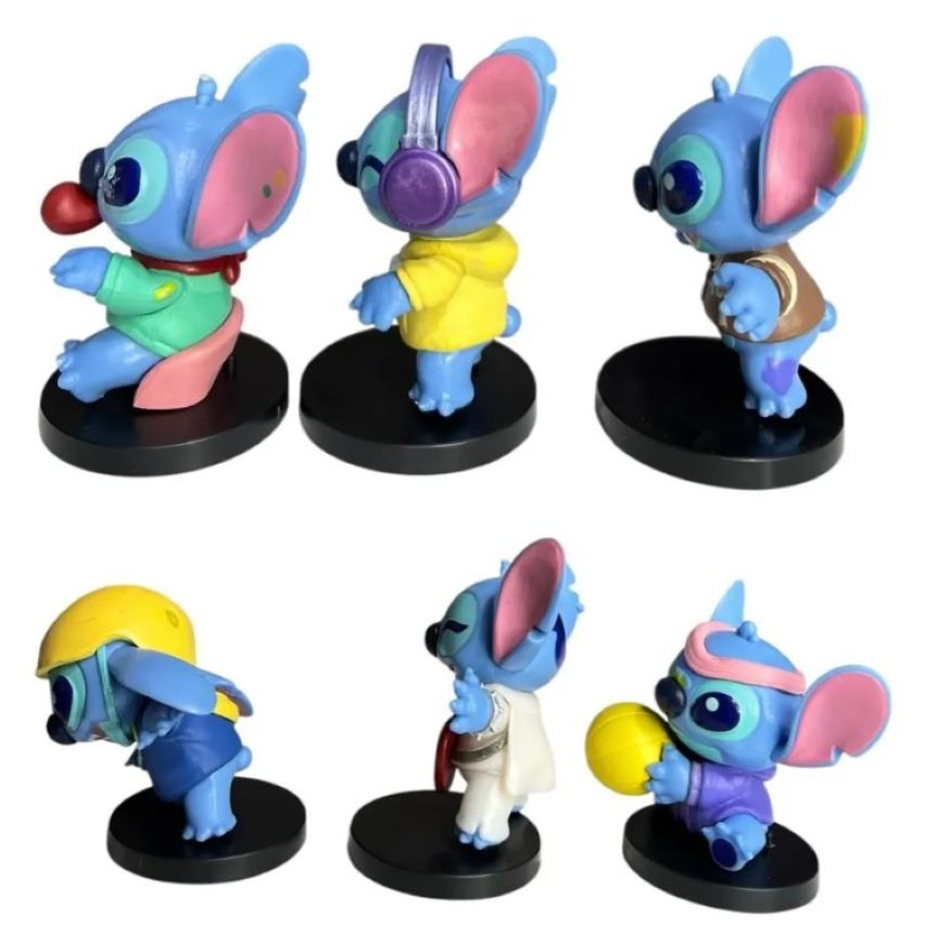 – Set por seis muñecos de stitch recreando escenas de las películas, elaborados en ABS. Sirven como decoración para diferentes lugares como estudio, habitación de los niños, salas o demás.