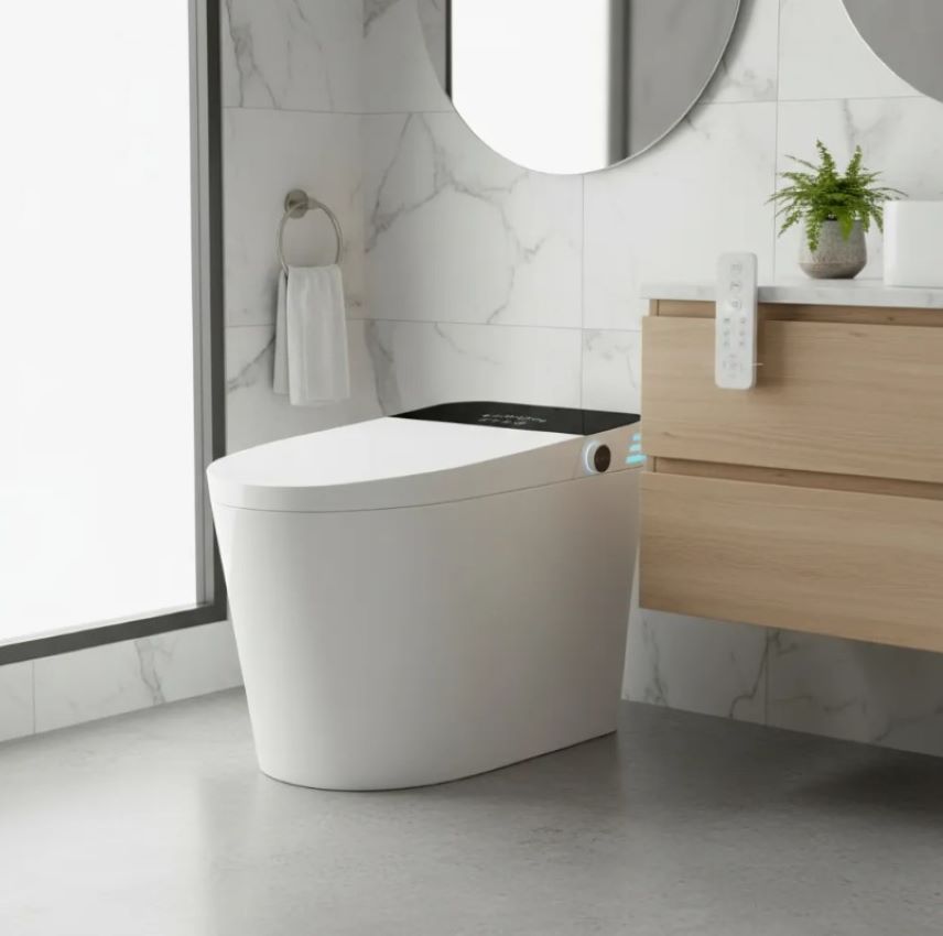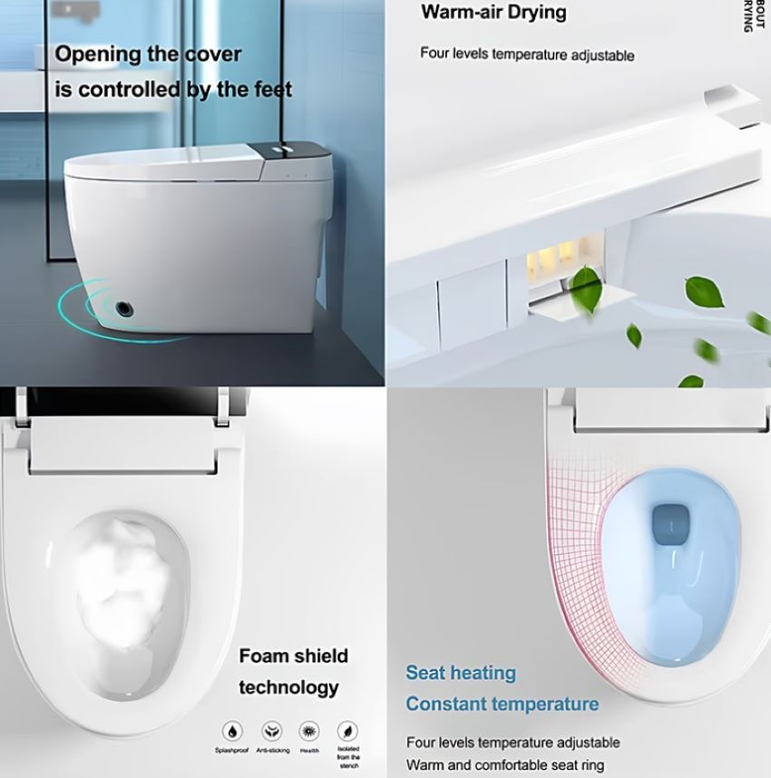 – Sanitario inteligente que redefine la elegancia en el baño con su impecable diseño de una sola pieza en cerámica blanca. La experiencia de uso es completamente intuitiva. Su moderna pantalla LED te mantiene informado sobre las funciones activas, mientras el control remoto te permite personalizar cada detalle a tu gusto.