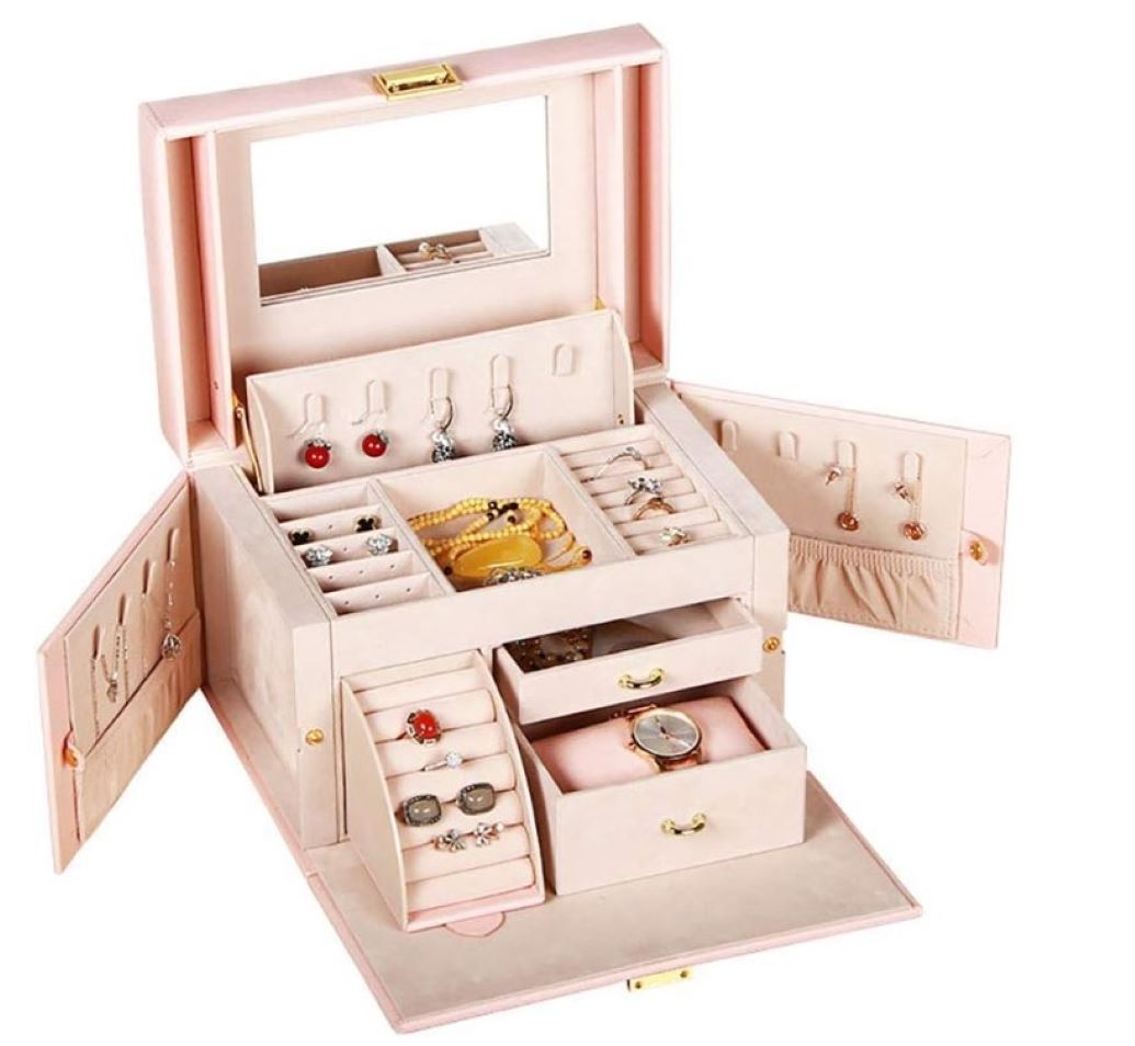– Compacto pero de gran capacidad para adornos, ligero, portátil, se puede colocar fácilmente en el lugar que desees. Cuenta con un practico espejo interior.