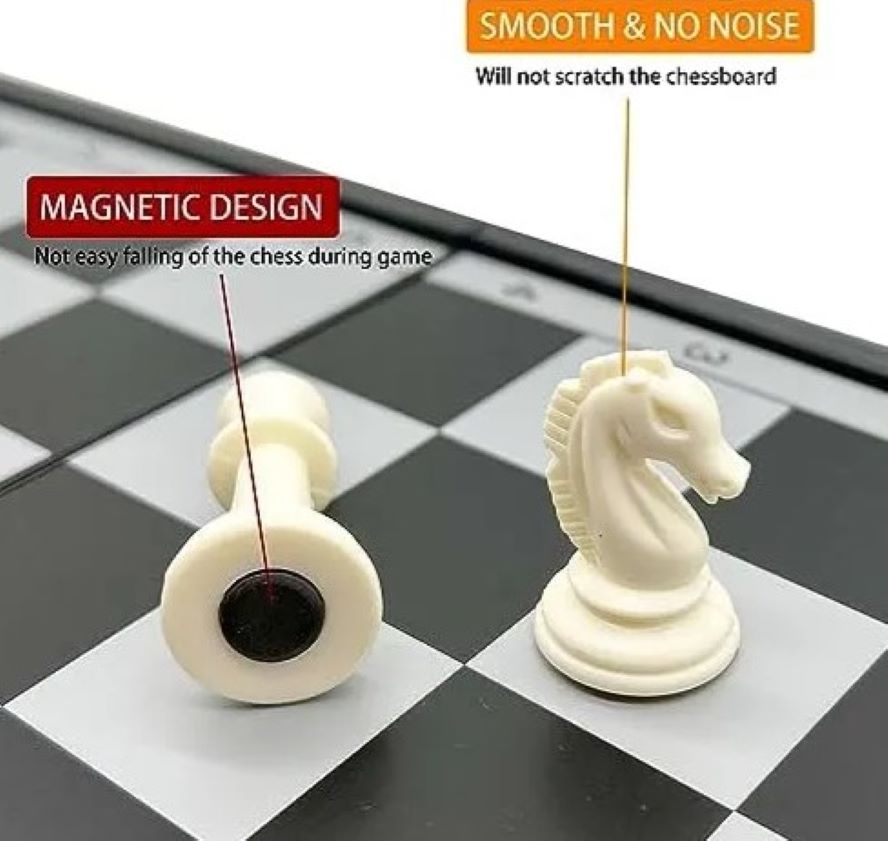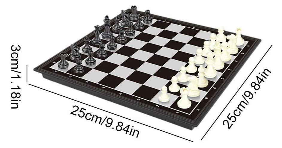 – Juego valioso: cada paquete incluye una bolsa de almacenamiento. Puedes llevar el ajedrez a cualquier lugar que quieras, incluso cuando estés de viaje. Este juego de ajedrez es compacto y portátil. Puedes jugar el juego de ajedrez internacional y el juego de damas en la parte delantera del tablero de ajedrez y el backgammon en la parte posterior. Puedes jugar 3 tipos de juegos a través de una compra.