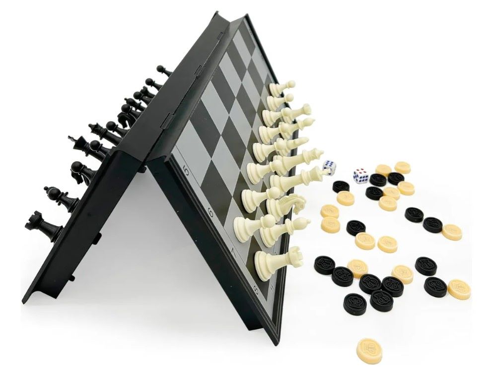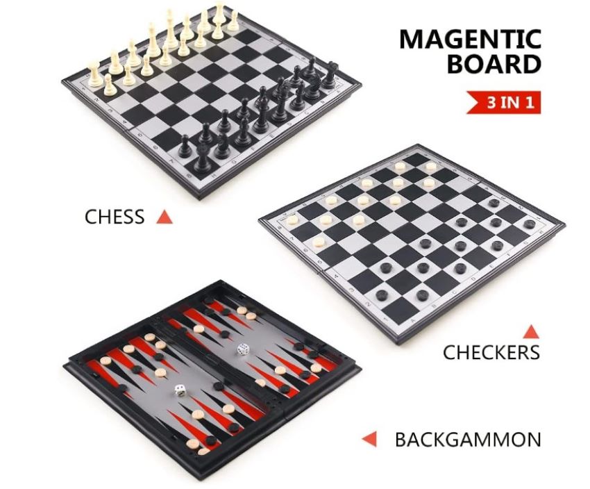 Juego De Ajedrez Magnético 3 En 1 Plegable Portátil.
