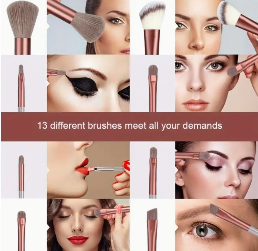 * Juego de brochas de maquillaje de 13 piezas con bolsa de almacenamiento