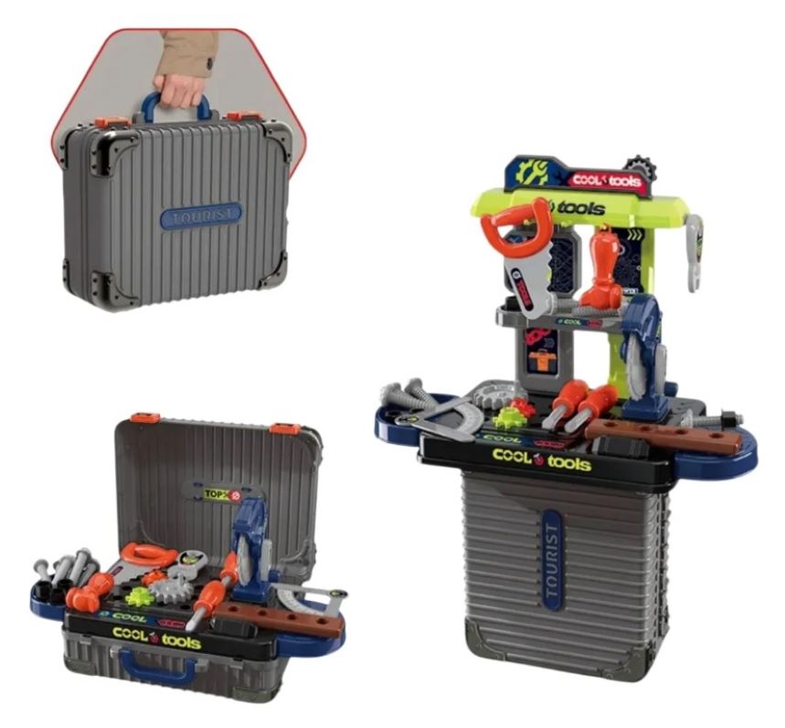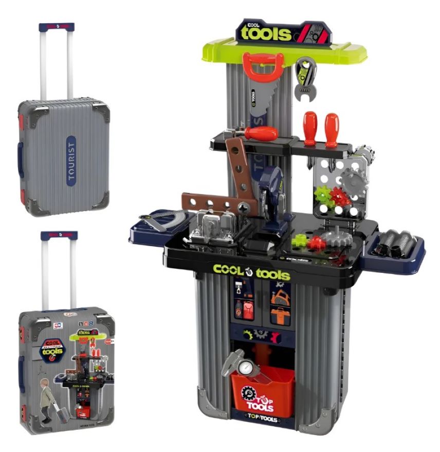 * Juguete portátil función de maleta con guía rodachines y manija para facilidad de trasporte y organizar todas las herramientas dentro de ella.