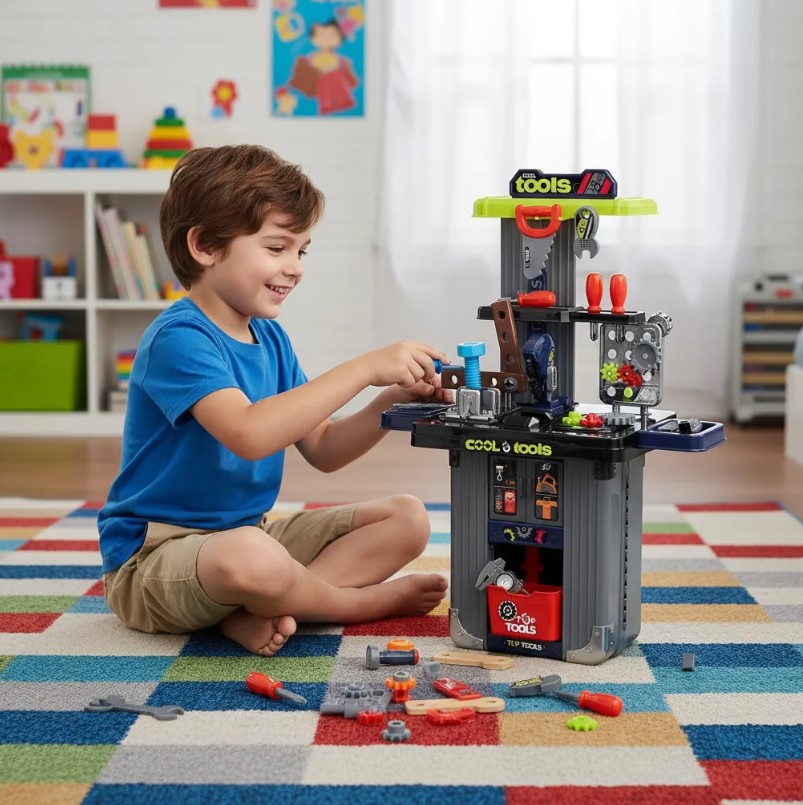 – La estación de herramientas para niños proporciona todo lo indispensable para momentos de juego y creatividad, viene con luces y sonidos para hacer aún más real la experiencia para el constructor. Anime a su hijo a identificar sus diferentes herramientas mientras “trabajan” en la casa, en el patio trasero y con sus amigos.