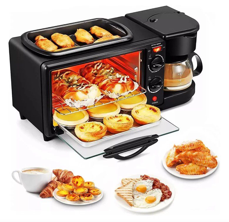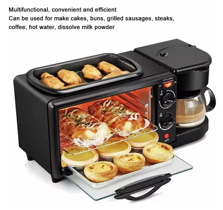Máquina Para Hacer Desayuno 3 En 1 Horno Cafetera Sartén.