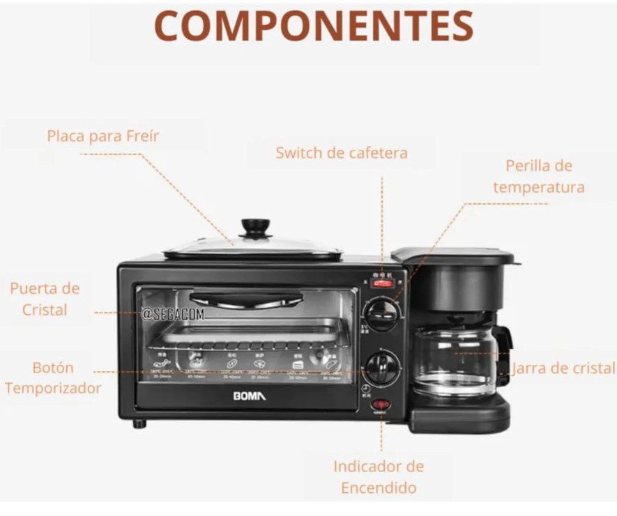 – Con la Máquina de desayuno 3 en 1 es la solución perfecta para preparar desayunos completos de manera rápida y eficiente. Con su diseño multifuncional, podrás hornear pan, freír alimentos y preparar café sin necesidad de múltiples electrodomésticos, ahorrando espacio y tiempo.