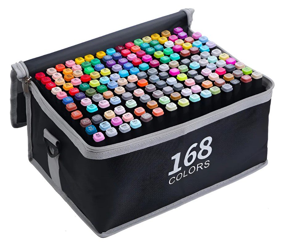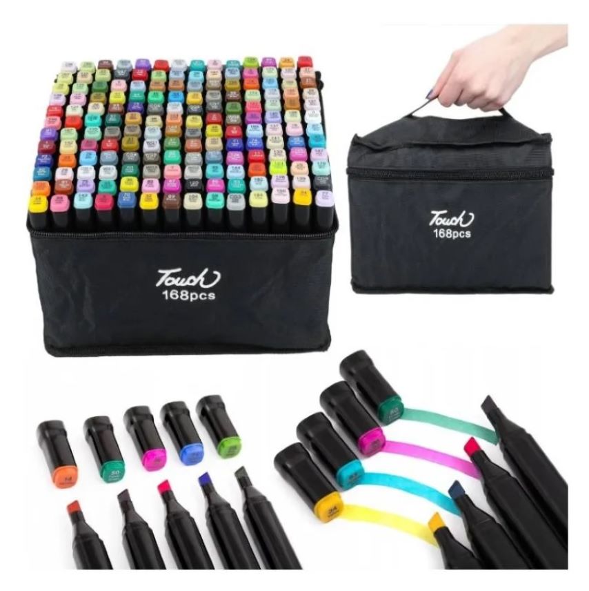 – Marcadores X 168 Unidades A Base De Alcohol Doble Punta’ ofrecen un diseño versátil con cepillo doble y puntas finas, permitiendo una amplia gama de proyectos de arte. Las puntas de marcador son ideales para trazos atrevidos y de barrido, mientras que las puntas finas facilitan el trabajo detallado.