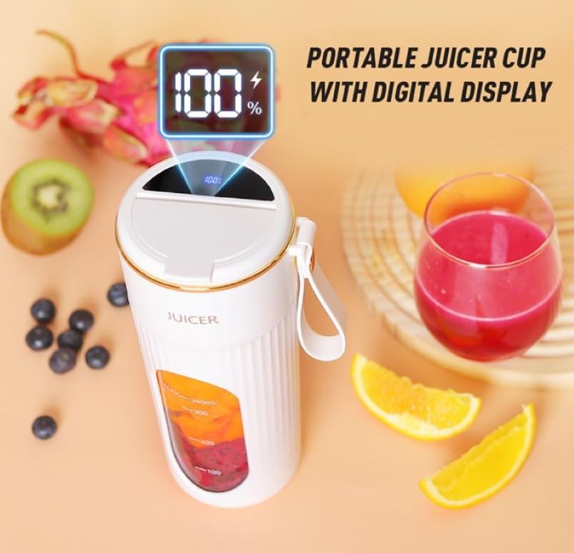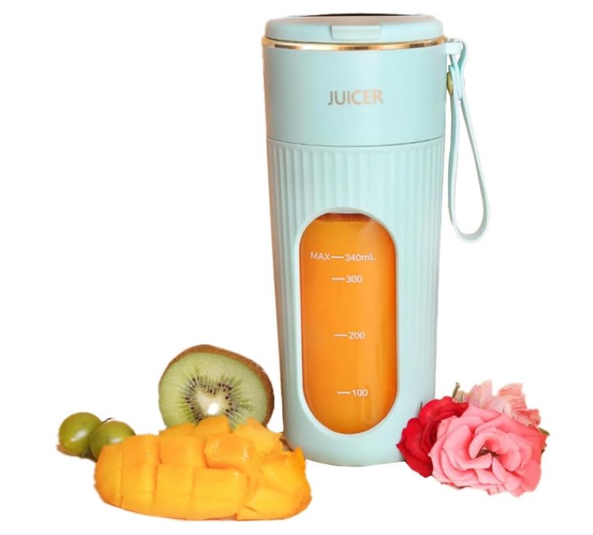 – Mezcla portátil: esta licuadora de viaje de tamaño personal cuenta con una tapa de botella deportiva y un lazo de transporte, ofreciendo una capacidad de 340 ml tus mezclas favoritas. La licuadora cuenta con un puerto de carga USB-C, lo que te permite cargarla utilizando un banco de energía, laptop, cargador de automóvil o cargador USB.