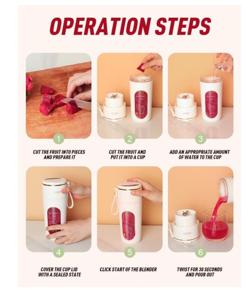 – Puedes utilizar el exprimidor portátil para hacer cualquier sabor que desees, en cualquier momento y en cualquier lugar, sin preocuparte por quedarte sin energía. Es perfecto para usar en la cocina, viajes, gimnasio, picnic u oficina. Fácil de usar: simplemente añade frutas, verduras u otros ingredientes, haz doble clic para mezclar y disfruta de tu bebida directamente o con el popote reutilizable incluido, ideal para batidos, batidos y mucho más.