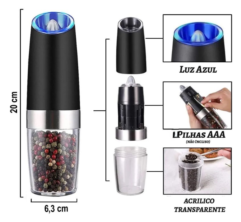 Molino Eléctrico Para Especias Sal Pimienta Con Sensor De Gravedad Led