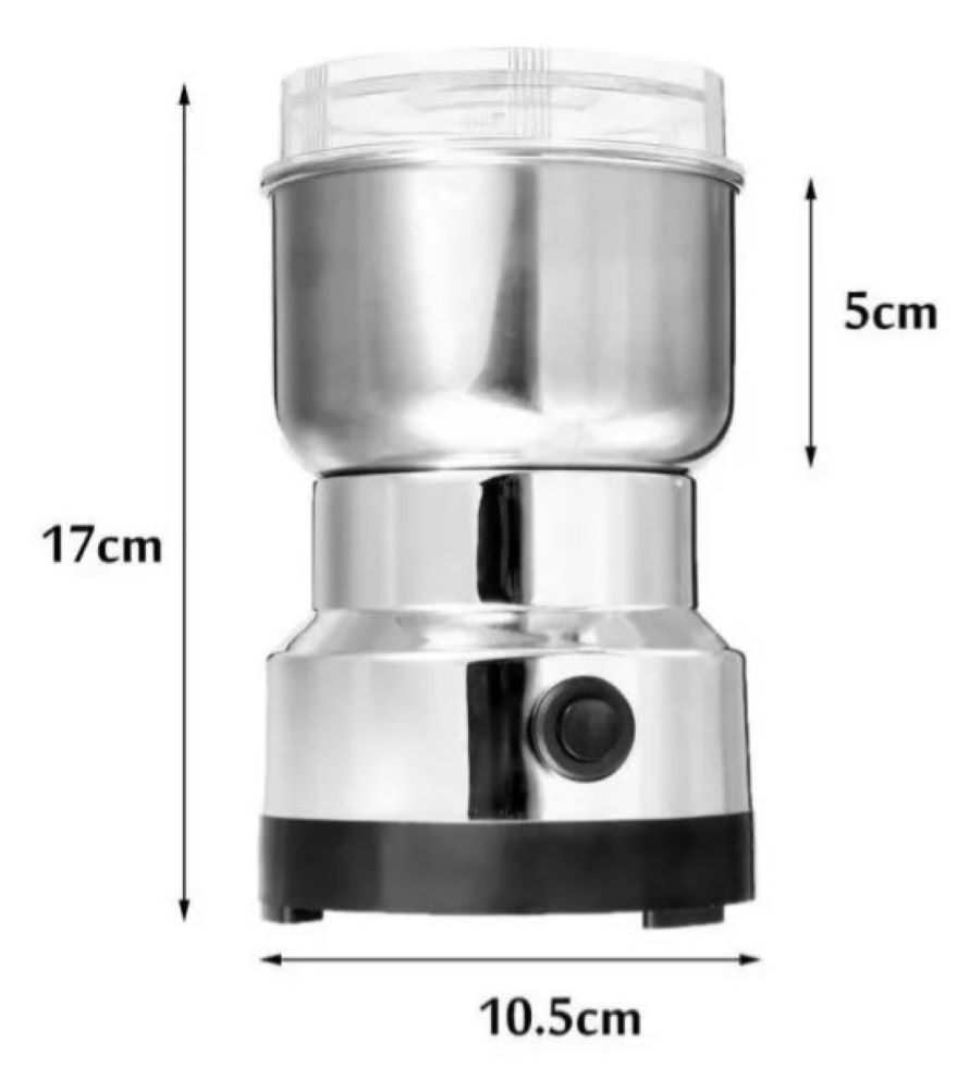 * Molino Triturador con Taza metálica y cuchilla fabricada en acero inoxidable, aptos para uso alimentario, seguro y duradero. Tiene un potente motor que da suficiente velocidad a las moliendas en muy poco tiempo.