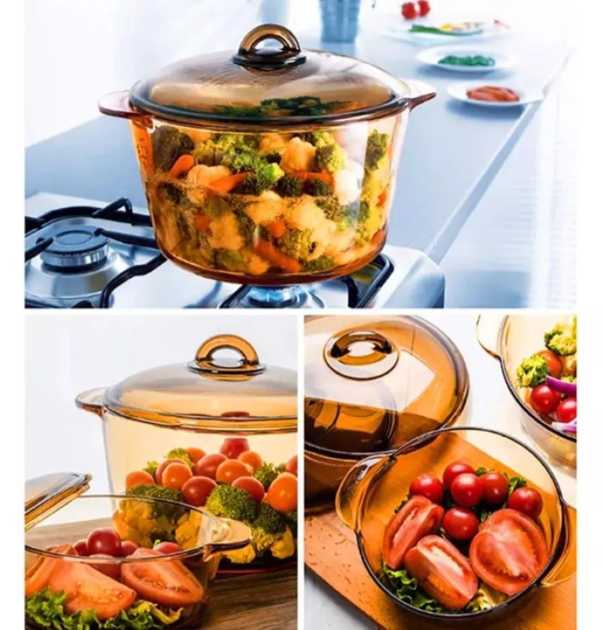 – Olla de vidrio de alta temperatura, material Vitrocerámico. Estos utensilios de cocina pueden resistir variaciones de temperatura rápidas de Para cocinar, recomendamos precalentar los utensilios de cocina vitrocerámica a baja temperatura durante 2 minutos antes de cada uso. Entonces puede cocinar a baja temperatura para una distribución uniforme del calor.