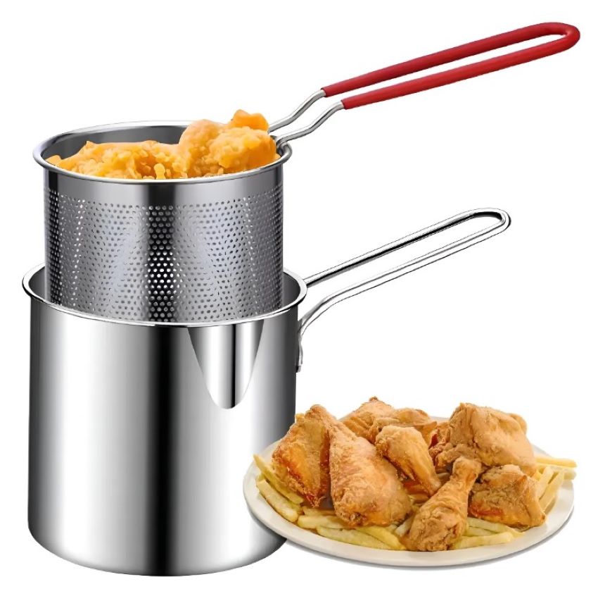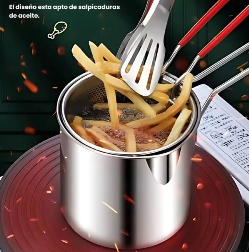Olla Freidora De Acero Inoxidable Con Cesta Coladora 1.2 LT
