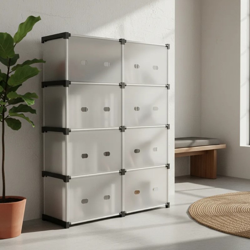 – Este organizador con 8 compartimientos es la solución perfecta para mantener tu hogar organizado de manera eficiente. Con un diseño modular tipo cubo y puertas, te permite acceder fácilmente a tus pertenencias mientras mantienes todo en su lugar.
