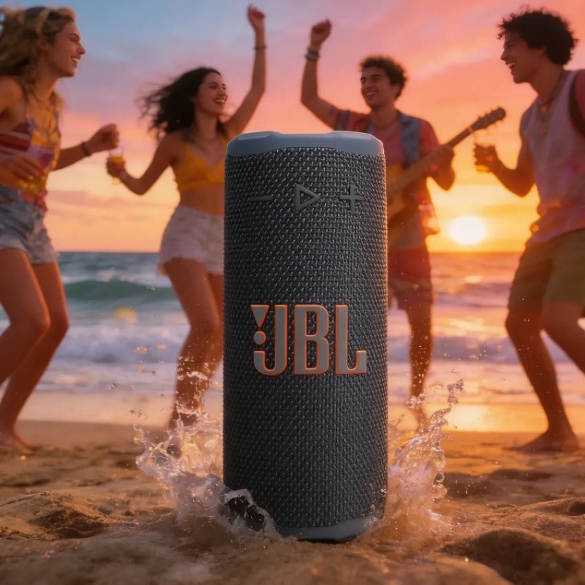 – Cuenta con certificación IP68, lo que lo hace resistente al agua, al polvo y a las caídas, ideal para aventuras, playa, bicicleta o montaña. Su diseño vertical con gancho integrado permite colgarlo fácilmente, mientras que la luz ambiental ajustable personaliza el ambiente desde la app JBL Portable.