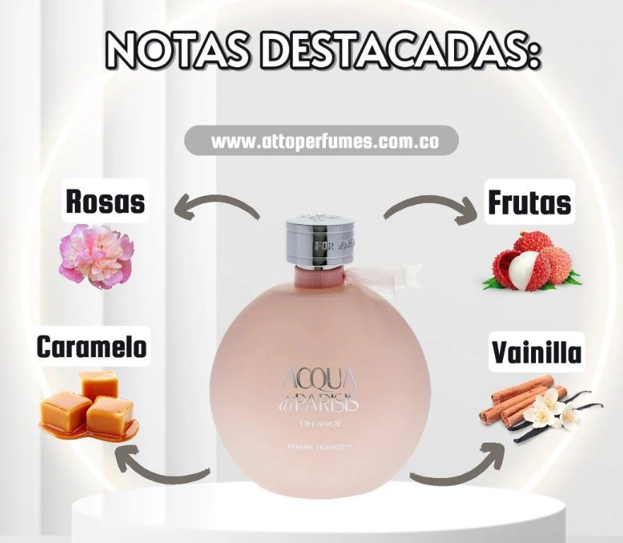 – Reyane Tradition Acqua Di Parisis Delanoe es una fragancia sofisticada, seductora y encantadora para la mujer moderna. Una mezcla con notas de caramelo y vainilla genera una dulzura femenina y agradable, y se complementa con un toque refrescante de pachulí para ofrecer una calidez profunda y suave. La combinación perfecta de notas dulces y cálidas para la noche.