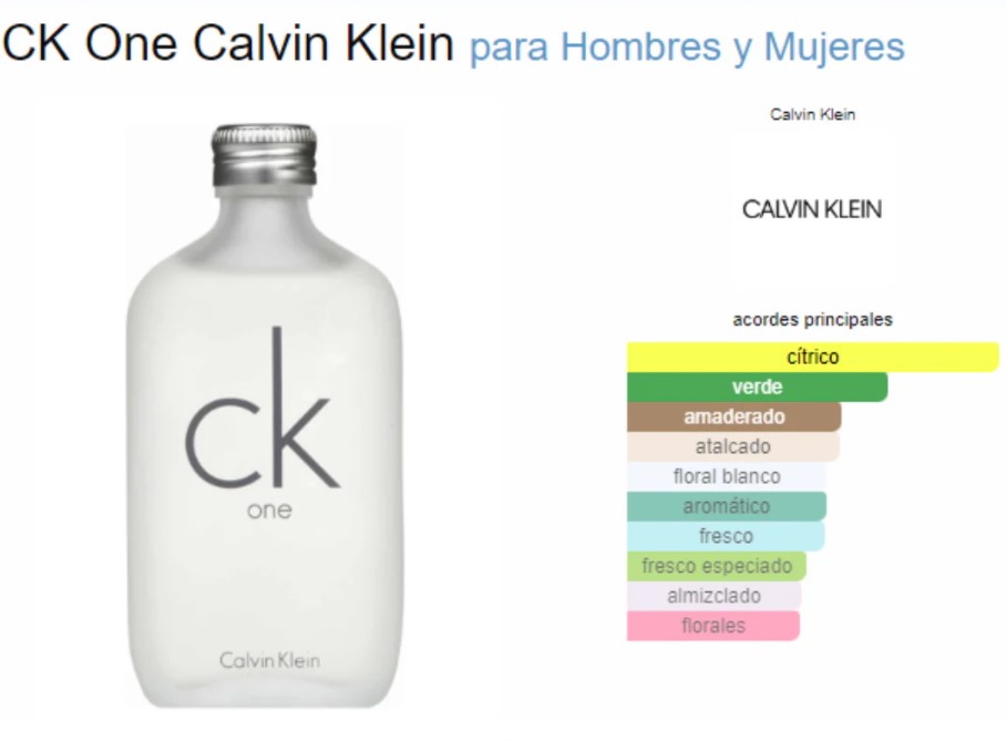 – CK One es una fragancia unisex que destaca por su modernidad y frescura. Lanzada en 1994, esta fragancia fue creada por los reconocidos perfumistas Alberto Morillas y Harry Fremont.