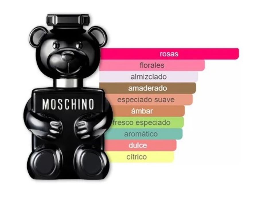 – Su pirámide de notas juega con la provocación, El frasco es divertido y optimista, un tierno osito de peluche icónico de Moschino. Se trata de una botella de vidrio rectangular negra con un acabado plateado y brillante, en la que el tapón es la cabeza del oso. Toy Boy la fragancia del hoy para hombres divertidos y sensuales.