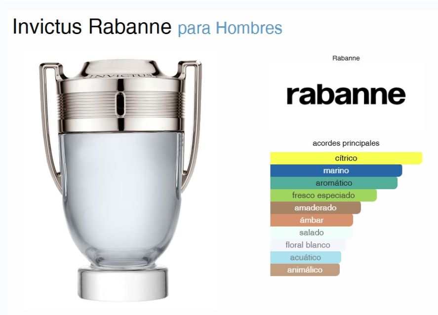 * Invictus de Paco Rabanne es una fragancia de la familia olfativa Amaderada Acuática para Hombres.