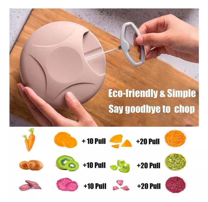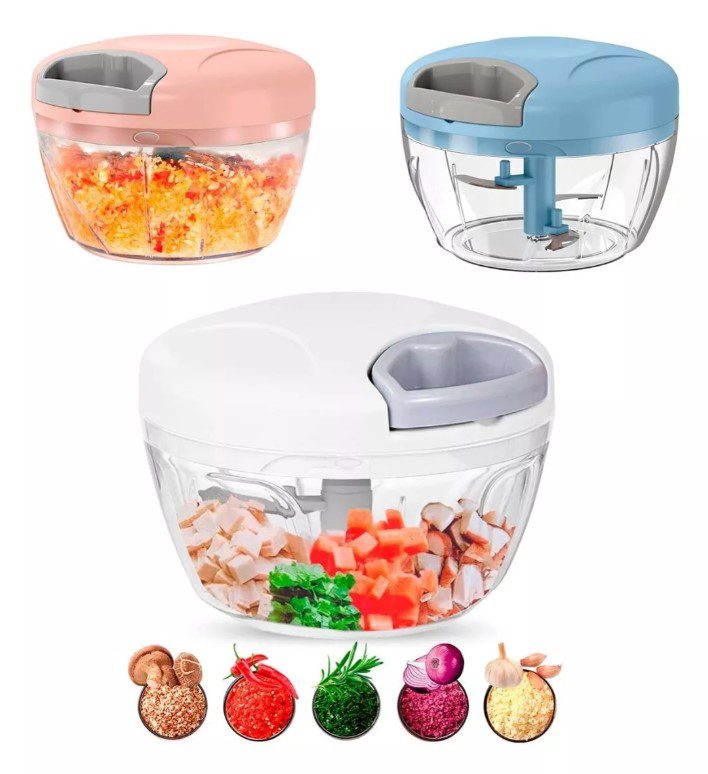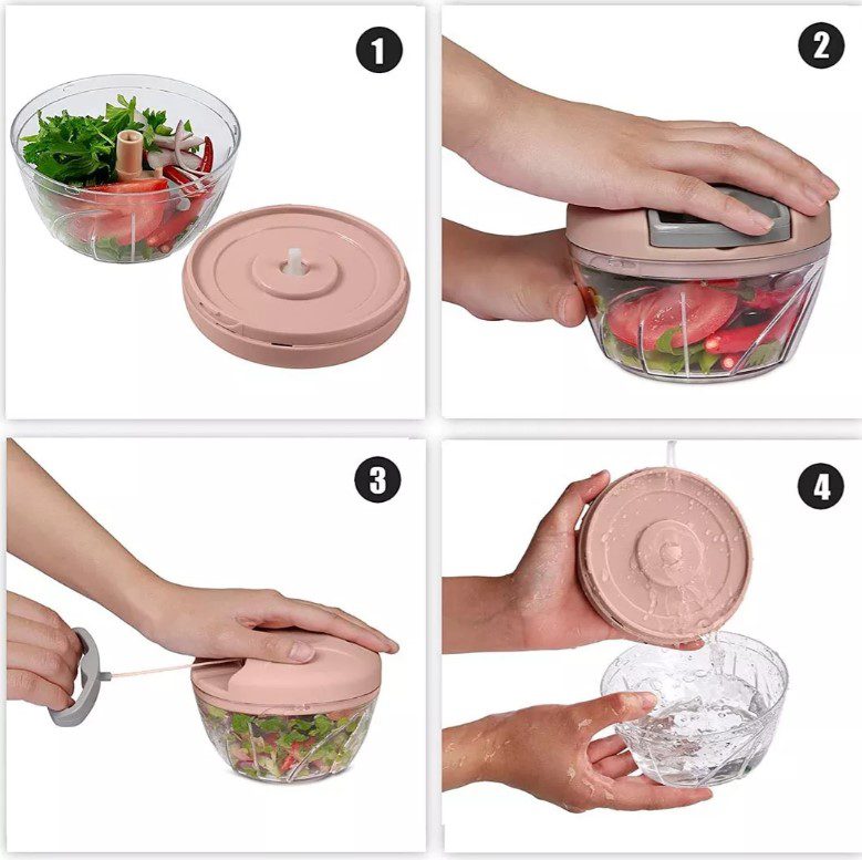 – Picadora manual de tracción giratoria, adecuado para picar todo tipo de alimentos como verduras, frutas, jengibre, ajo, frutos secos, carne, hierbas; batir huevos, preparar guacamole y ensaladas.