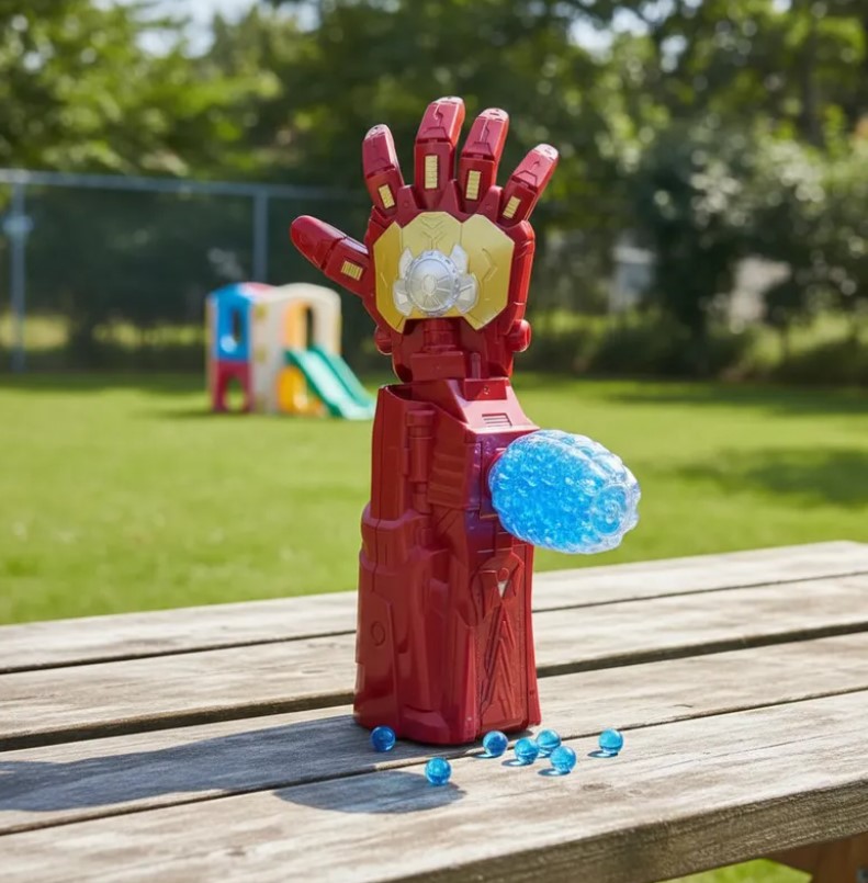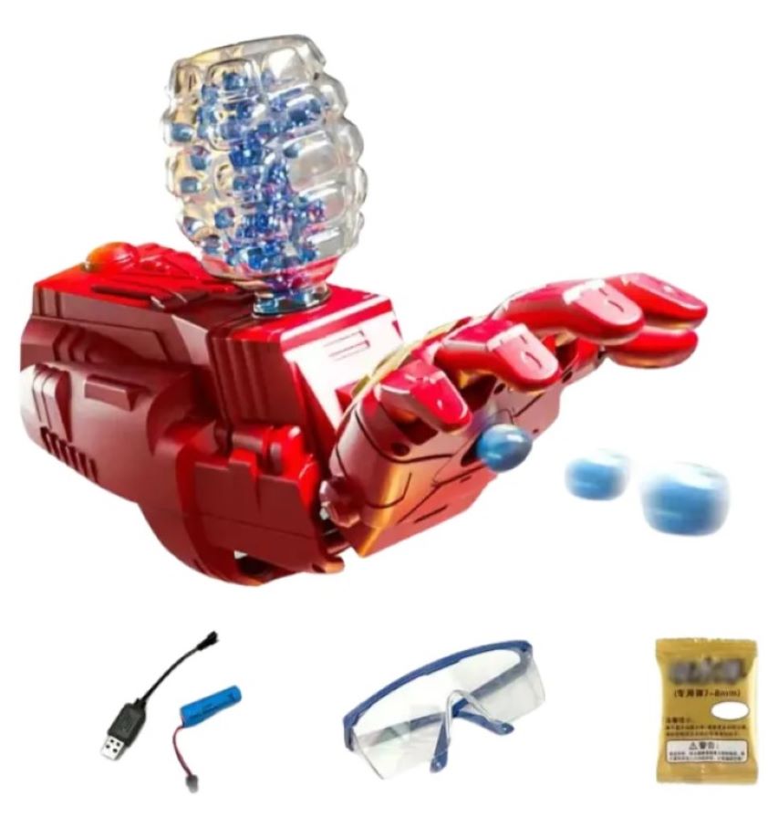 – Este brazo robótico inspirado en Iron Man permite a los niños convertirse en pequeños héroes con un lanzador de bolas de hidrogel ideal para juegos al aire libre. El juguete está diseñado para colocarse cómodamente como un guante en el brazo, permitiendo a los niños disparar las bolas de hidrogel en sus aventuras y simulando los movimientos del famoso personaje.