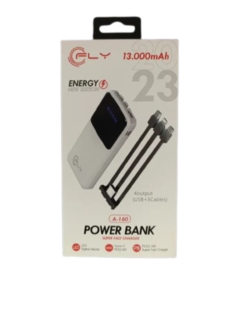 Power Bank FLY 13.000 Mah Carga Rápida A-160 USB 3 Cables.