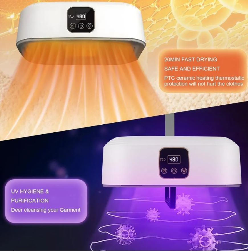 – Su tecnología de secado mejorada asegura un flujo de aire potente, mientras que la función de temporizador y el sistema UV integrado proporcionan una limpieza profunda, cuidando tus prendas y optimizando el espacio. Ideal para personas con agendas ocupadas o aquellos que viven en espacios pequeños.