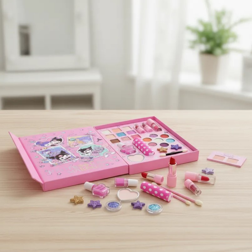 – Set de maquillaje infantil lavable, seguro y no irritante. Contienen diferentes accesorios con los que las niñas pueden jugar para mejorar su creatividad y sus habilidades estéticas. La maleta incluye un compartimento único que permiten una mejor organización de los cosméticos. Además, su diseño portátil la convierte en la compañera ideal para jugar, crear y compartir momentos divertidos con amigas.