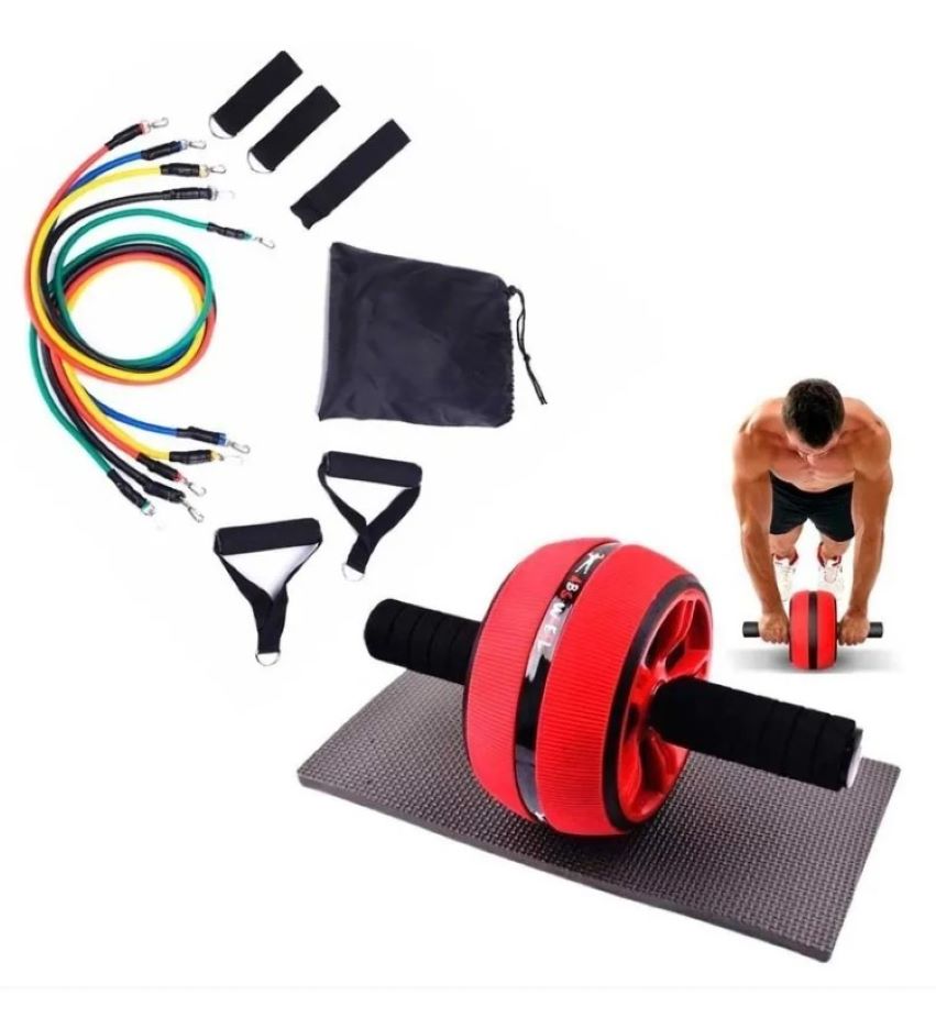 Set Rueda Abdominal Ab Wheel Mas Bandas Tubulares 11pcs